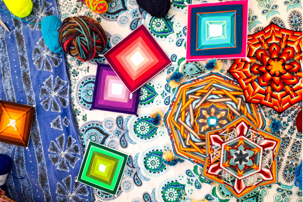 • Cerchi di tessitura del mandala ‘Ojo de Dios’.